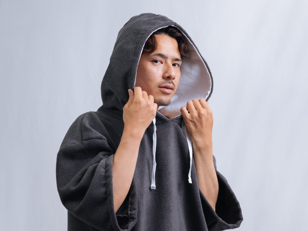 - サウナ専用ポンチョ:サウナ専用素材を使用し、吸水性と速乾性に優れています。寒い外気や風から身体を守りながら、快適なサウナ体験をサポートします。